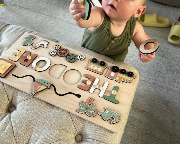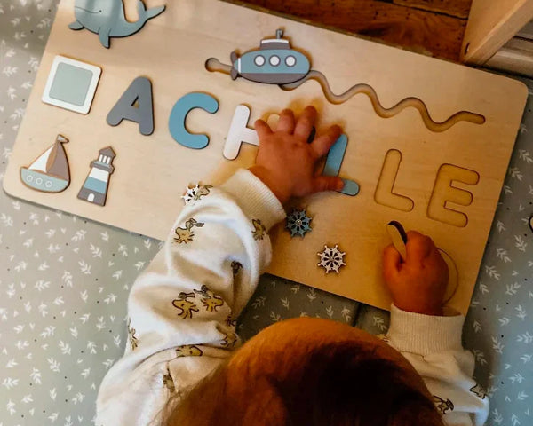 Indem es die Buchstaben seines Vornamens zusammensetzt, entdeckt Ihr Kind einen magischen Aspekt seiner Identität. Es ist ein Lernspiel, das ihm Stück für Stück offenbart, wer es ist.