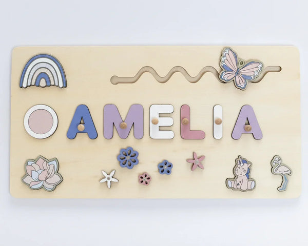 Jedes Puzzle kann mit dem Vornamen Ihres Kindes personalisiert werden, unabhängig davon, wie lang dieser ist (maximal 10 Buchstaben).